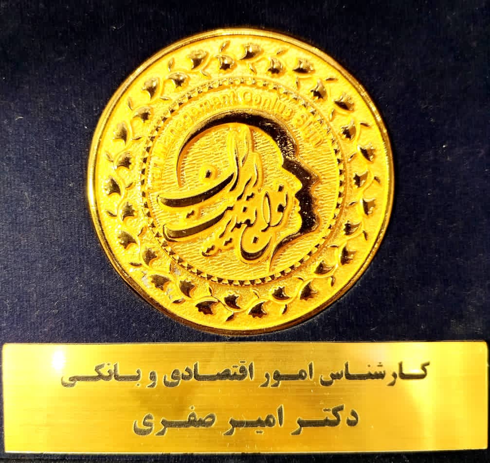 وی با ۳۹ سال سابقه کاری مدیریت در صنعت بانکداری و بنگاههای اقتصادی دولتی و خصوصی با توجه به نبوغ و جدیت در انجام امور علمی نشان ملی نبوغ و مدیریت ایرانی را در سال ۱۳۹۶ به دست آورد